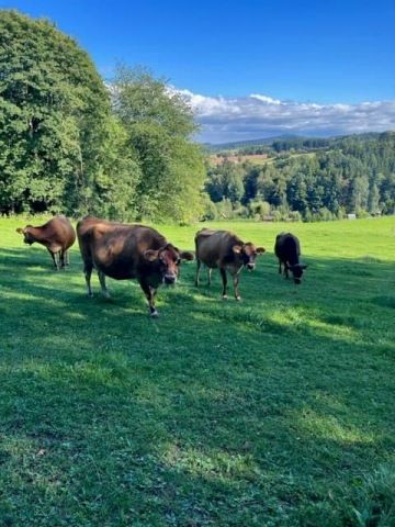 Na rodinné farmě paní MVDr. Samohýlové chováme s láskou kravičky jménem Žofinka, Madlenka, Helenka, Vanda a Alela. Všechny žijí spokojeně ve volnosti s neomezeným přístupem do pastvin. Podojit se chodí dvakrát denně zavoláním na své jméno. Čerstvé chlazené mléko následně dopravíme do mlékomatu, zde si jej můžete zakoupit. Přijďte ochutnat! Je skutečně lahodné.